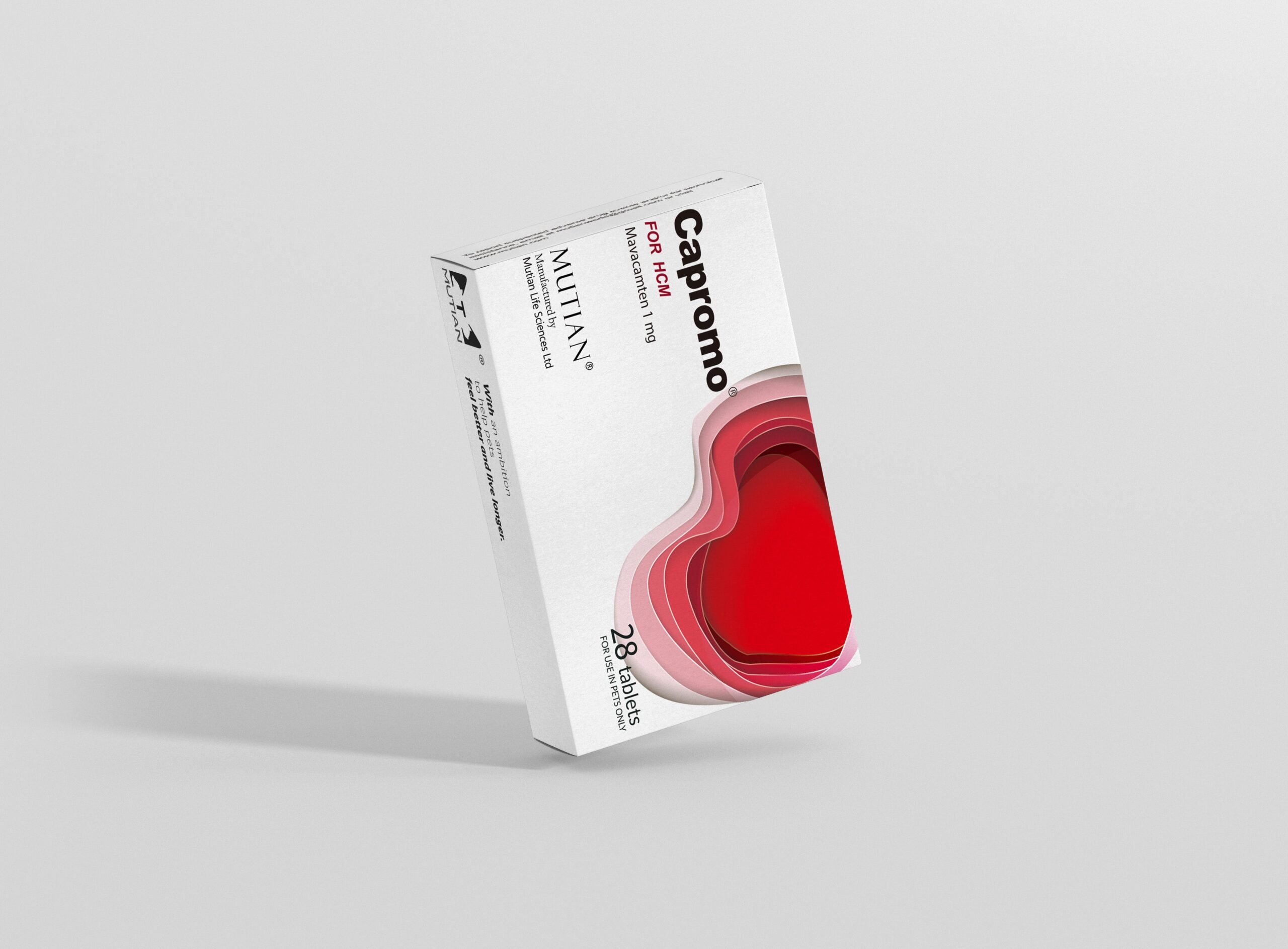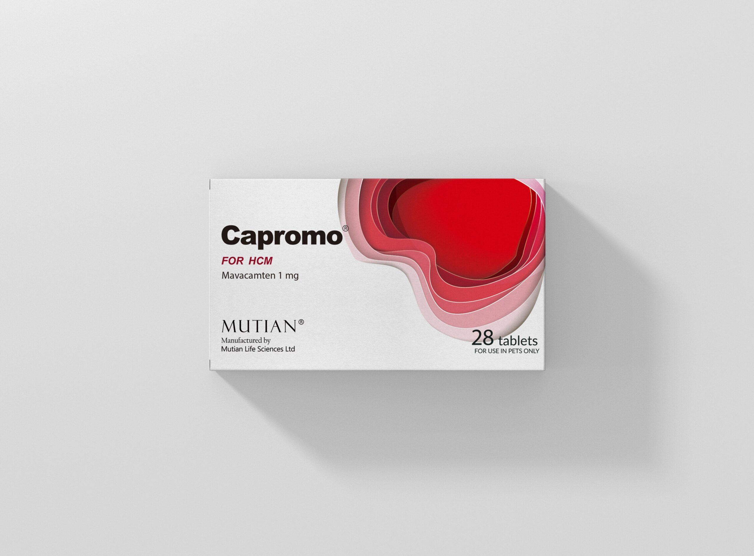 Capromo®(mavacamten) is a reversible allosteric inhibitor of cardiac myosin, used to treat adult animals with obstructive hypertrophic cardiomyopathy (HCM) of New York Heart Association (NYHA) Class II-III (B-C), to improve function and symptoms.Specifications: 1mg*28s
